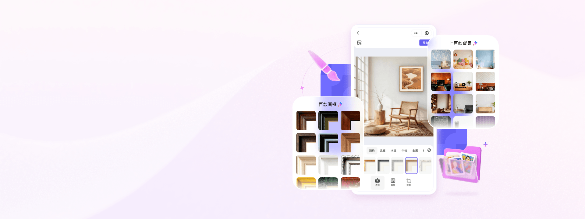 从上百款背景和画框中挑选心仪款式进行
